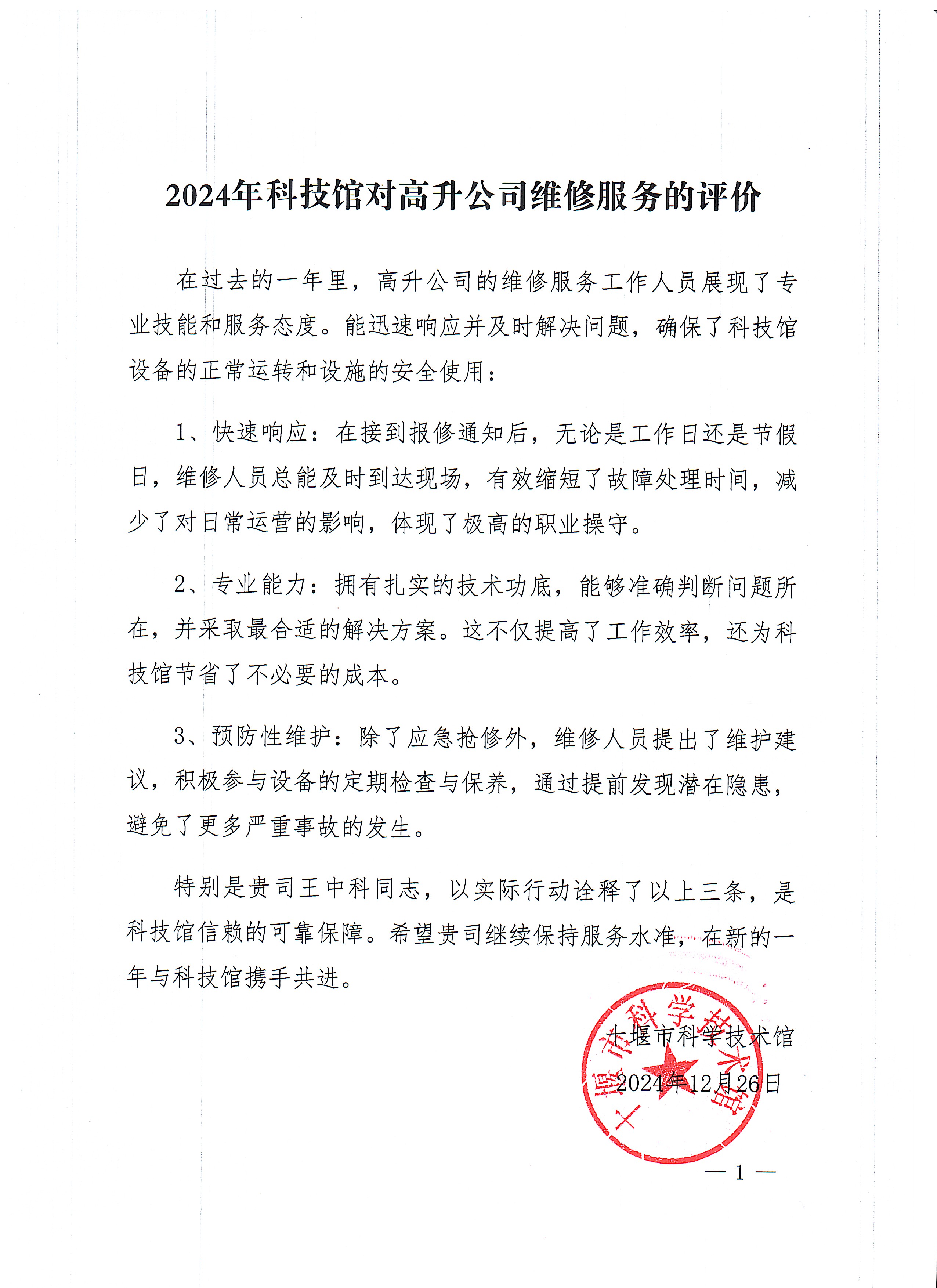 王中科,技服事業(yè)部運(yùn)維服務(wù)人員,2023年退休返聘勞務(wù)人員,在2024年獨(dú)立承擔(dān)市科技館維修服務(wù)工作期間個(gè)人創(chuàng)效17476元,受到單位書面致函表揚(yáng)和肯定。